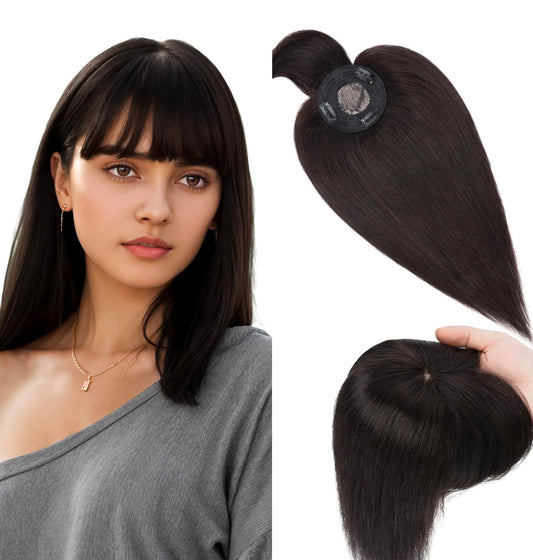 Prótesis capilar mujer con flequillo natural touppe con clips